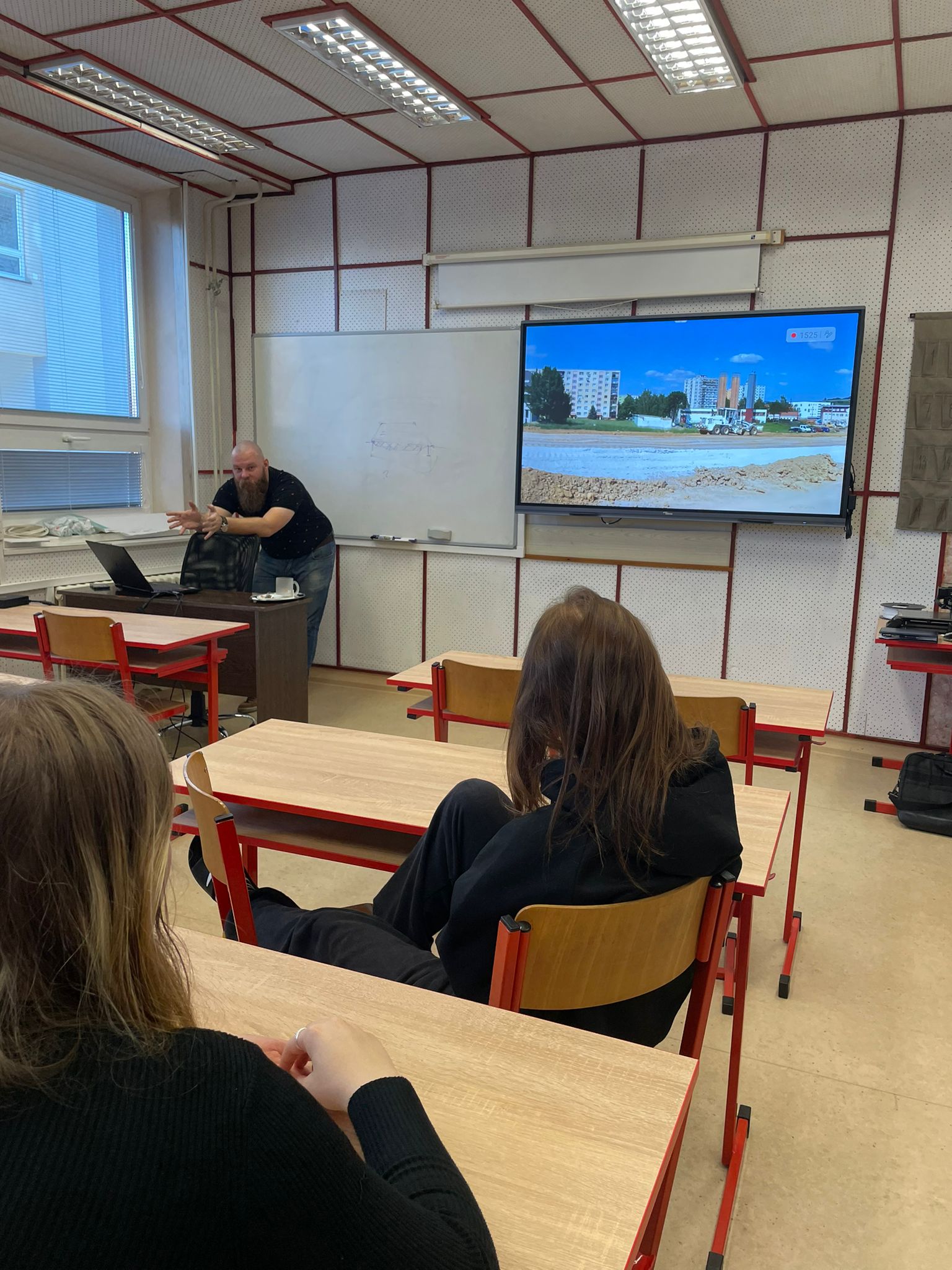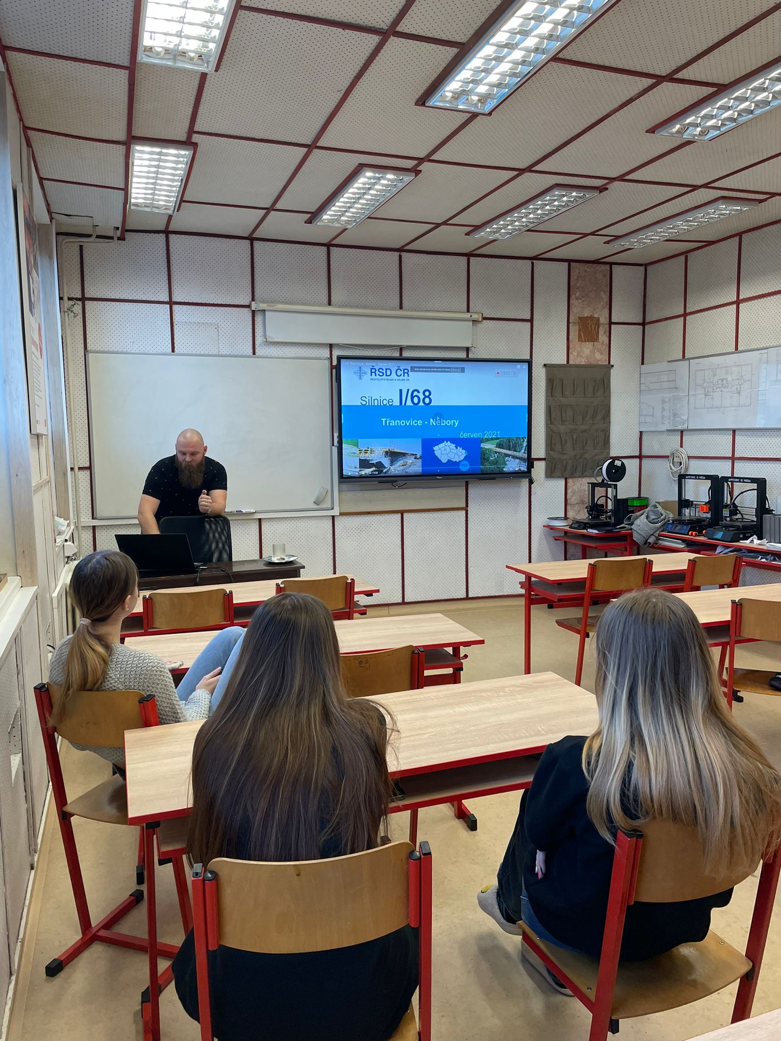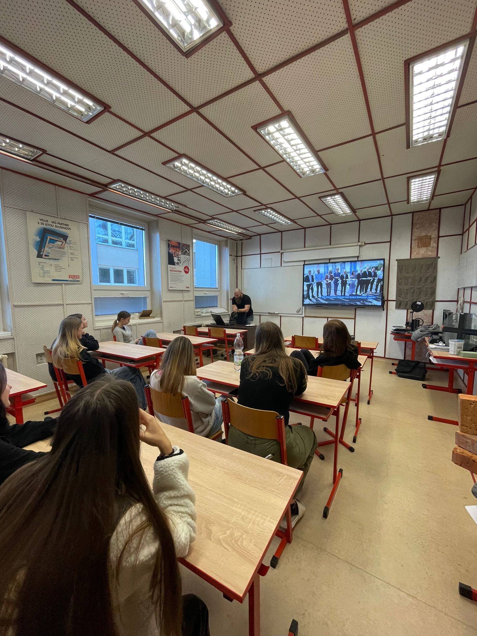 V rámci akce Den pro školu se studenti 2. ročníku oboru Pozemní stavitelství setkali s odborníkem z praxe Mojmírem Fajtem, který zastupoval renomovanou společnost Eurovia. Žákům byla představena činnost firmy, dozvěděli se také mnohé o složení vozovky a procesu její konstrukce. Nechyběla ani prezentace videí, na kterých bylo možné zhlédnout významné stavební projekty, jako je např. výstavba obchvatu města Frýdku-Místku či Třanovic. Ukázky jasně demonstrovaly rozsah a náročnost moderního stavebnictví.