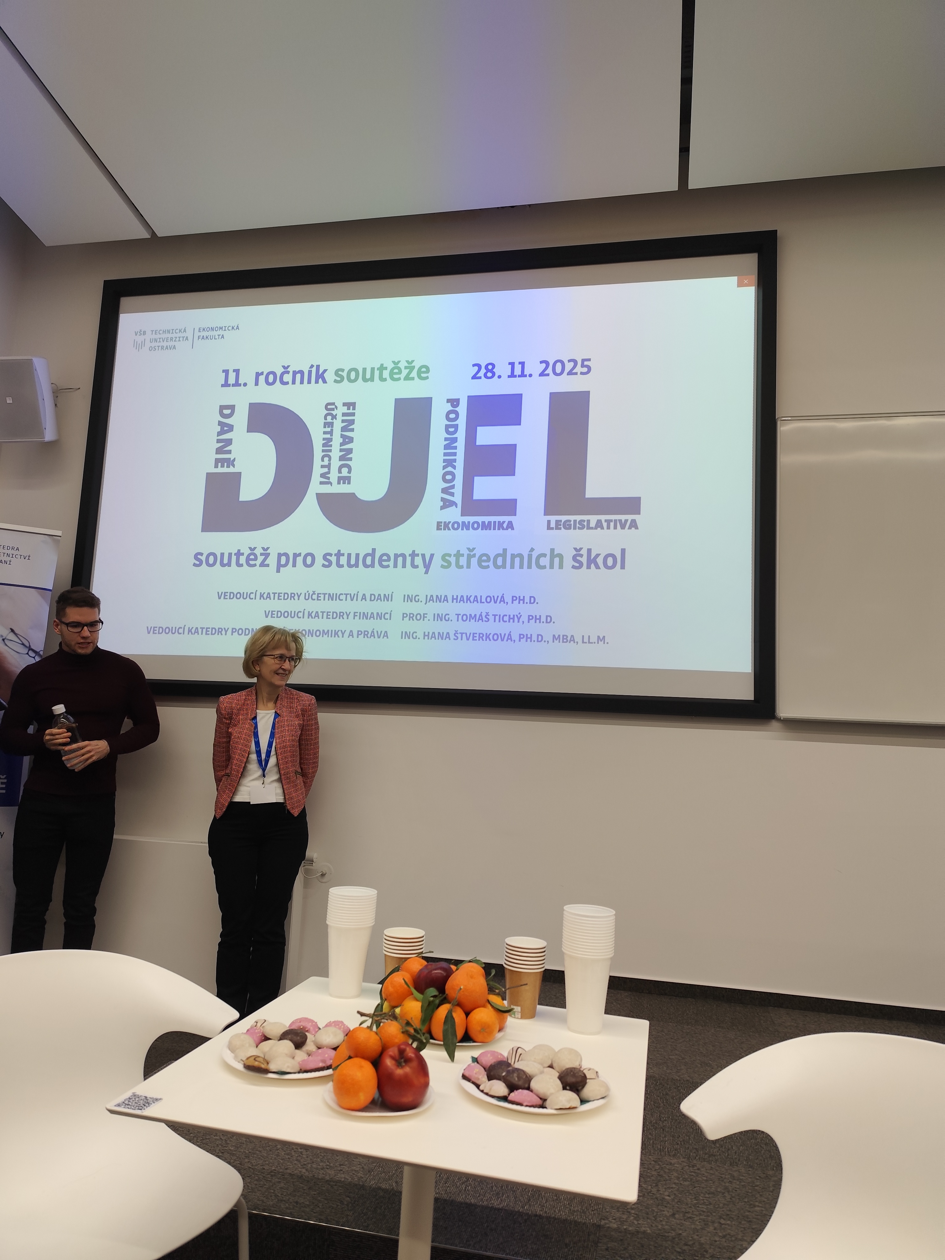 Studentky 4. ročníku Kateřina Simanová, Klára Halová a Vendula Fucimanová se zúčastnily ekonomické soutěže DUEL – Daně, Účetnictví, Ekonomika, Legislativa, která se konala na Ekonomické fakultě VŠB–TU v Ostravě. Tato soutěž je určena studentům středních škol s ekonomickým zaměřením a jejím cílem je ověřit znalosti z účetnictví, daní, financí a podnikové ekonomiky i schopnost pracovat společně v týmu při řešení aktuálních ekonomických úloh. V konkurenci dalších středních škol si studentky ověřily nejen teoretické znalosti, ale i praktické dovednosti v rámci případových úloh, odborných testů a kvízů.