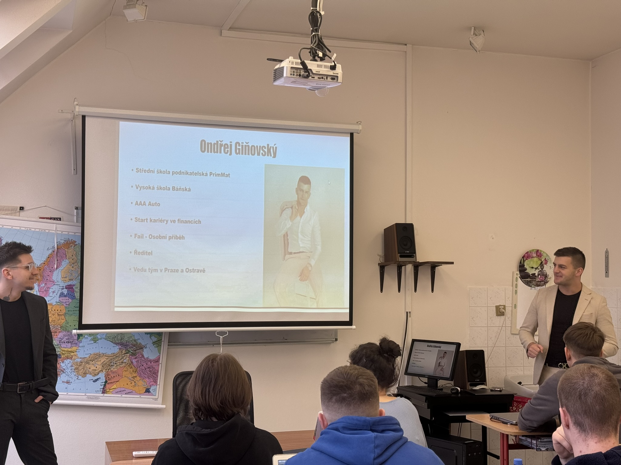 Velice inspirativním se stalo pro studenty 4. ročníku setkání s absolventem školy Ondřejem Giňovským. Jeho přednáška o finanční gramotnosti se zaměřila na správu peněz a budování finanční stability. Studenti získali nejen cenné znalosti, ale také praktické rady od člověka, který prošel stejným vzděláním a dosáhl úspěchu ve světě financí. Toto setkání jasně ukázalo důležitost sdílení znalostí a zkušeností pro osobní i profesní úspěch.