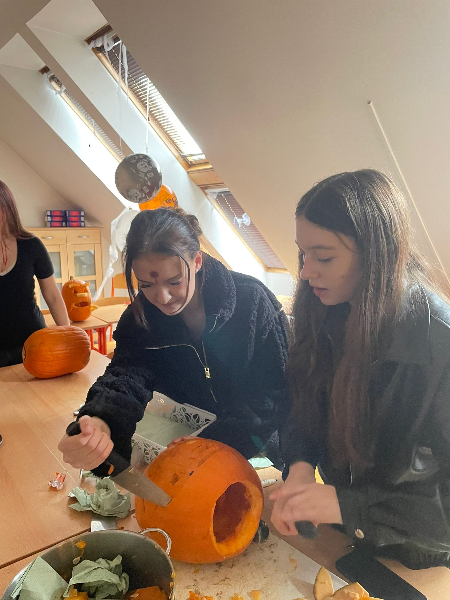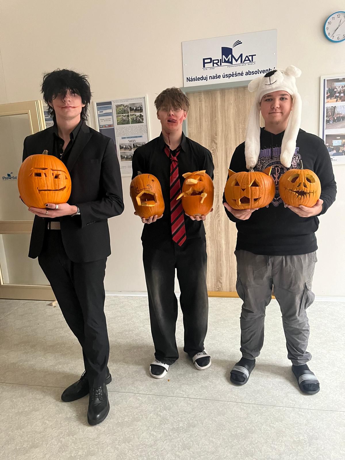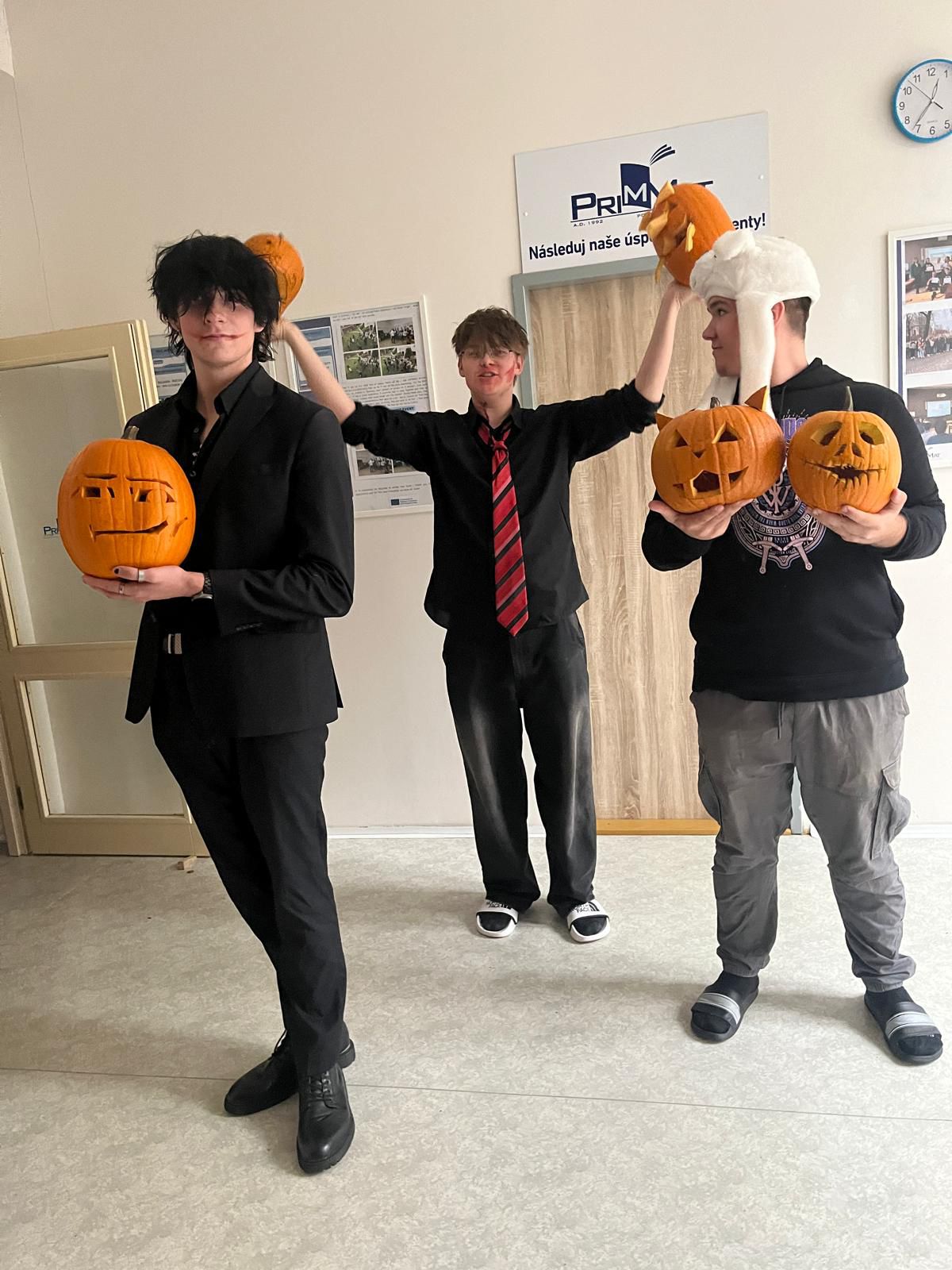 Halloween se stal na PrimMatu oblíbenou tradicí a ani letos nezklamal. Celá akce probíhala, jak je zvykem, v anglickém jazyce. Program byl nabitý interaktivními aktivitami, mezi které patřil tematický kvíz, treasure hunt, escape room či virtuální realita. Všechny tyto činnosti byly koncipovány tak, aby podporovaly týmovou spolupráci, kreativní myšlení a schopnost řešit problémy. Nechyběly ani oblíbené soutěže o nejlepší halloweenský kostým a nejlépe vydlabanou dýni, které přinesly do školy spoustu fantazie a originality. Děkujeme všem organizátorům a účastníkům.