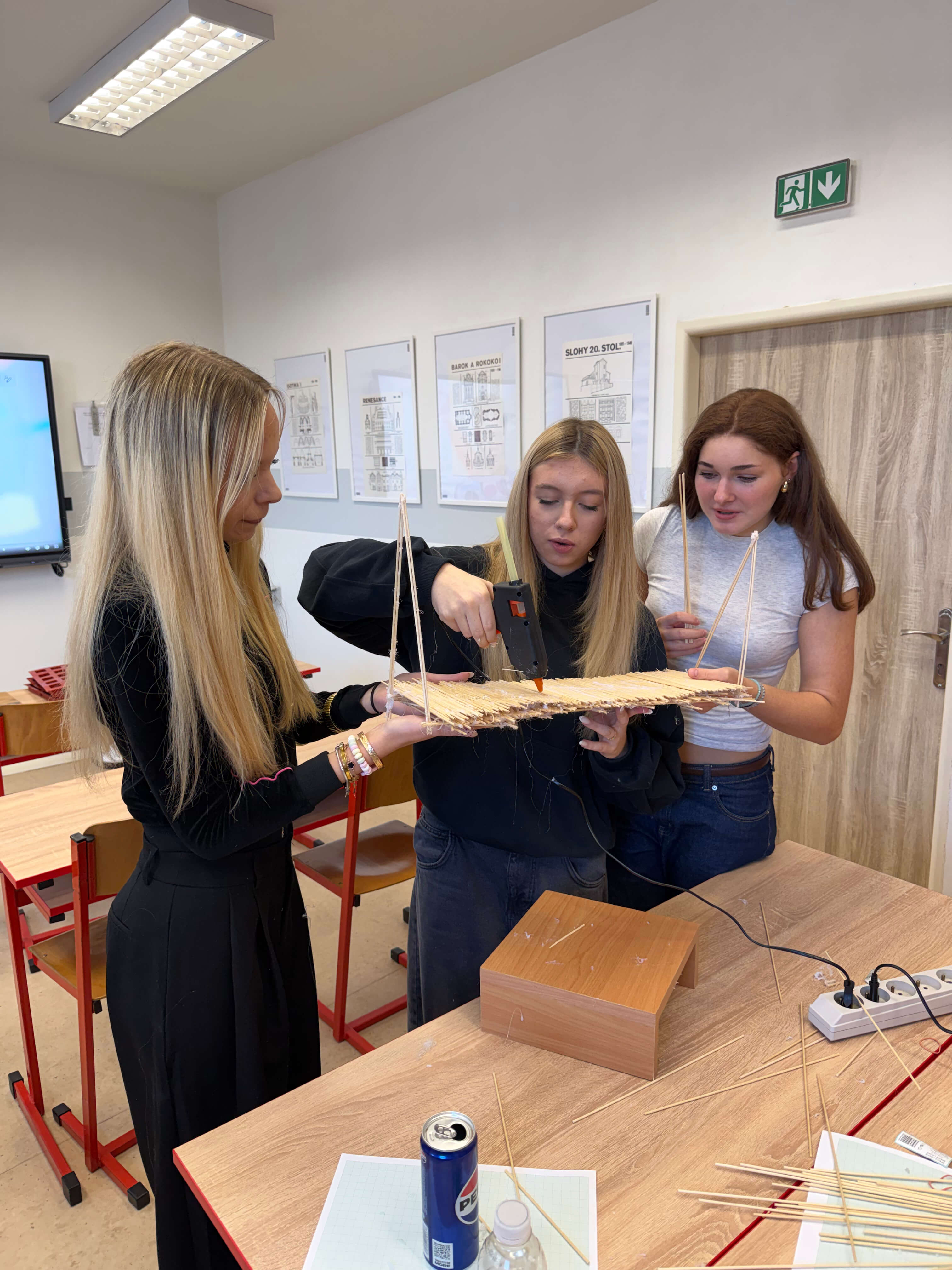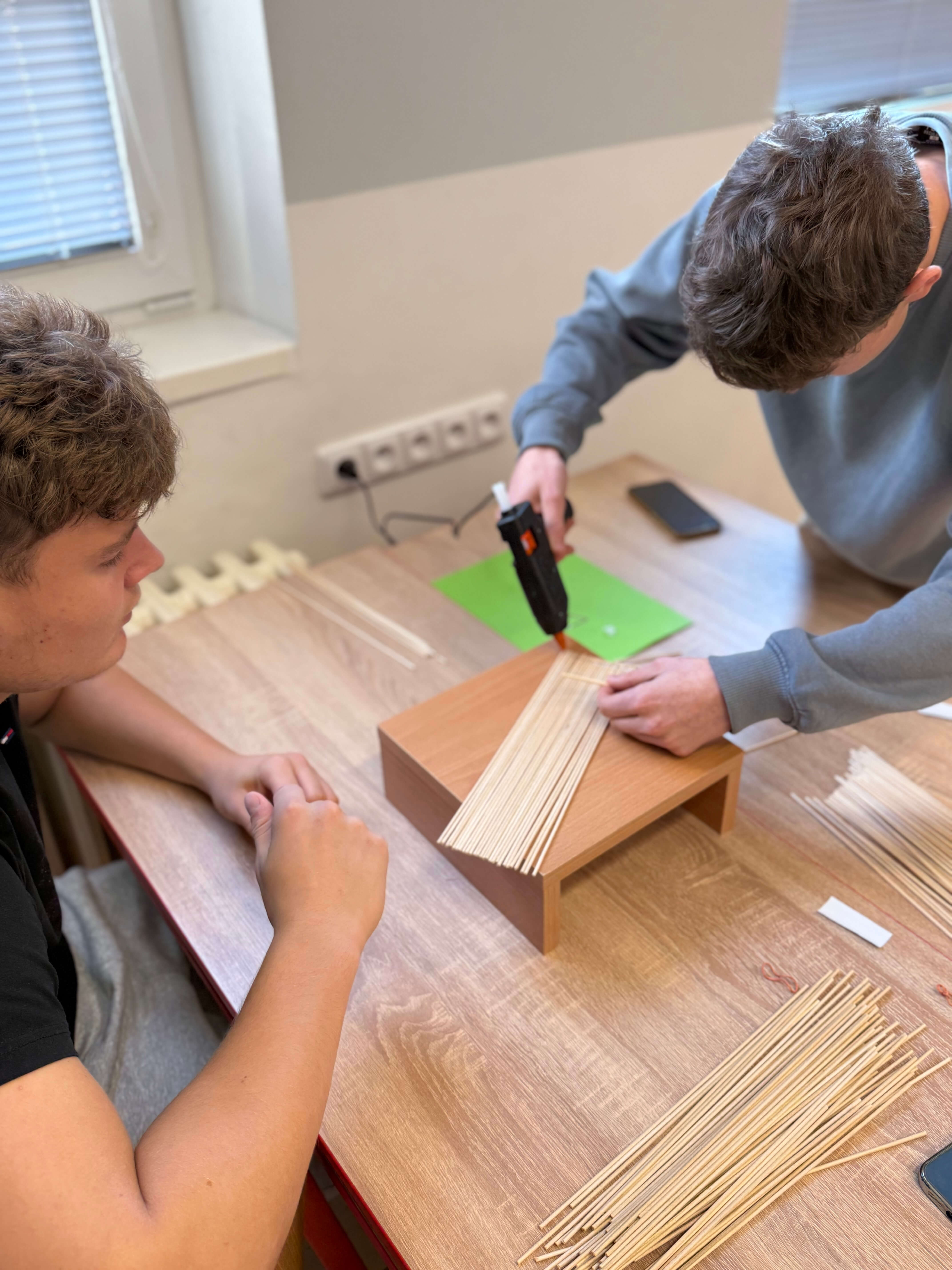 Studenti 2. ročníku se zaměřením na pozemní stavitelství si vyzkoušeli, že stavební mechanika nemusí být jen o výpočtech. V hodinách stavěli mosty ze špejlí – a pak je čekala zátěžová zkouška. Napětí rostlo s každým přidaným závažím, ale mosty odolávaly překvapivě dlouho. Nejpevnější konstrukce unesla až 11,5 kilogramu! Skvělá ukázka kreativity, týmové práce a technického myšlení.