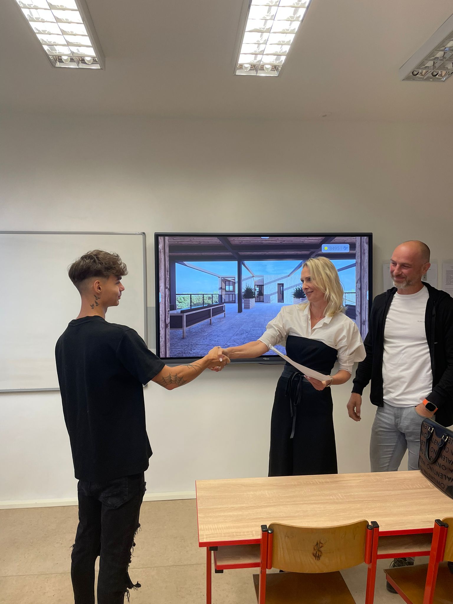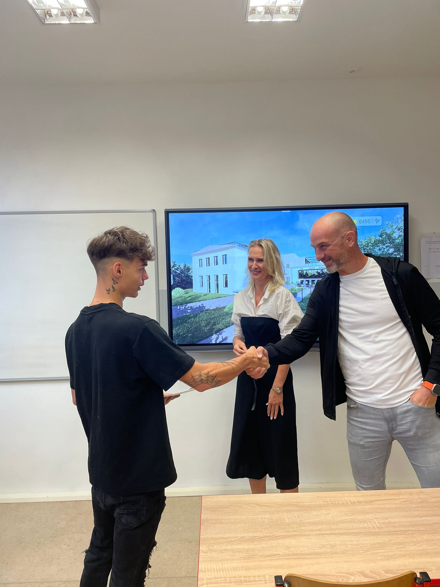 V minulém školním roce zahájila naše škola spolupráci se stavební firmou De Mann. Úkolem studentů 3. ročníku oboru pozemního stavitelství bylo vytvořit 3D model s vizualizací stavebního centra v Ostravě-Heřmanicích. Vítězná práce Patrika Marušinského byla firmou odměněna.