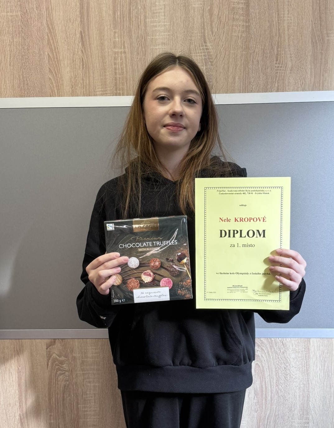 Na naší škole proběhlo školní kolo Olympiády v českém jazyce, kterého se zúčastnilo osm vybraných studentů. Soutěž byla rozdělena do dvou částí – jazykové a slohové. V letošním ročníku si nejlépe vedla Nela Kropová z prvního ročníku, která získala 1. místo, především díky vynikajícímu výkonu v jazykové části.