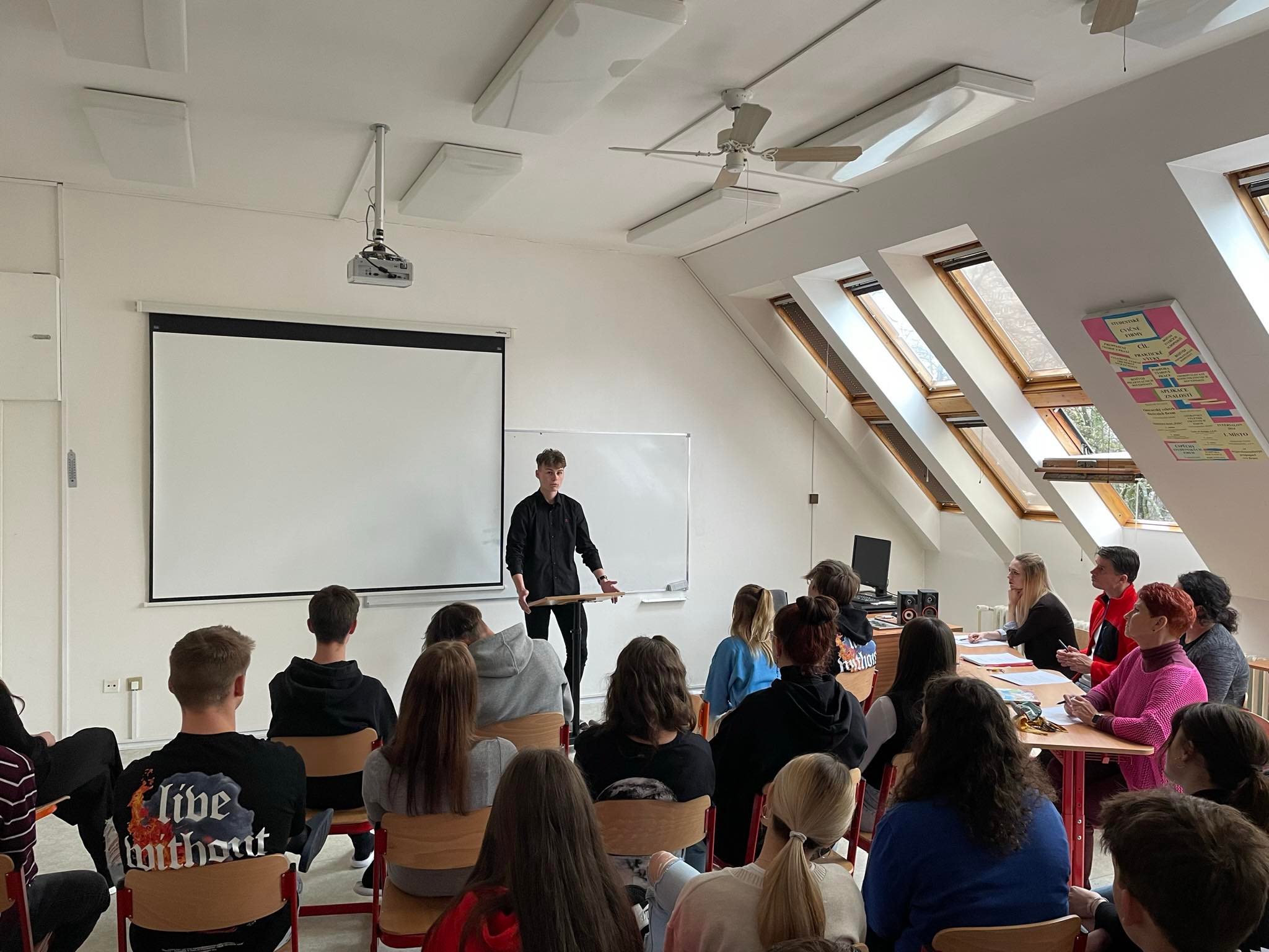 Koncem dubna se na naší škole konala již tradiční soutěž v mluveném projevu na téma "Problém, který se týká i mě". Žáci 1. ročníku změřili své řečnické dovednosti a do finále postoupilo 5 řečníků. Za nejlepšího rétora byl nakonec vyhlášen Phillip Bartecký s tématem Učení. Phillip vybojoval cenu diváků i poroty.