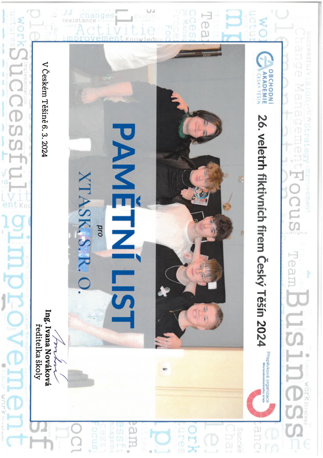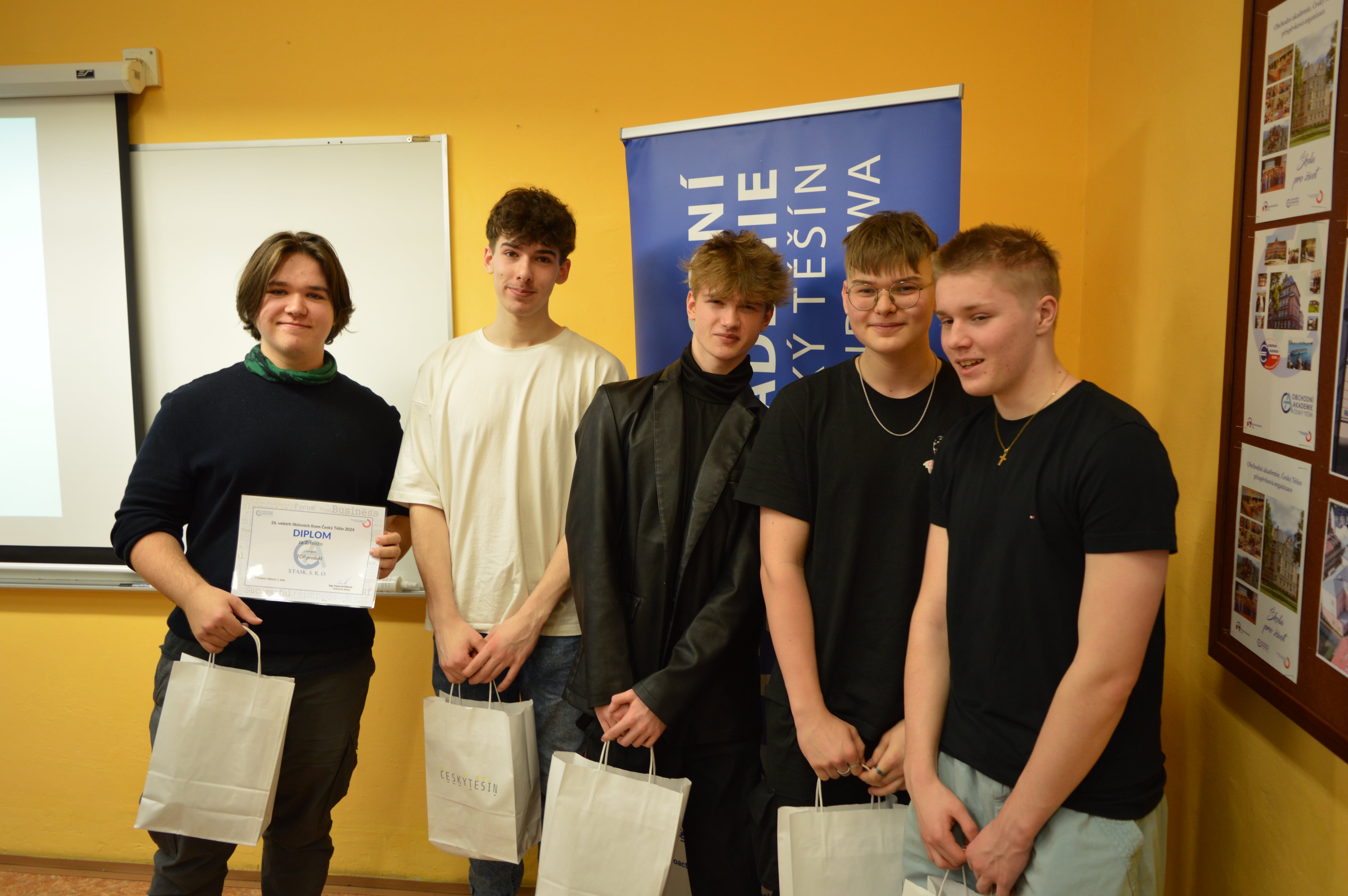Naši studenti 3. ročníku se s firmou X Task, která se zaměřuje na zdravý životní styl, zúčastnili Veletrhu fiktivních firem v Českém Těšíně a Ostravě. Tým ve složení Bruno Kroček, Vojtěch Tomaník, Tomasz Cieslar, Alan Bartoš a Radim Mičulka, nejen že prezentoval nápadité myšlenky, ale vytvořil i reálnou aplikaci, která podporuje zdravý životní styl. Tato aplikace je důkazem toho, jak studenti mohou využít své znalosti a dovednosti k vytvoření užitečného produktu, který má potenciál skutečně ovlivnit životy lidí. PrimMaťáci se v Českém Těšíně umístili na druhém místě v kategorii Top firem. Tento úspěch není jen odměnou za jejich snahu, ale také motivací k dalšímu rozvoji a růstu.