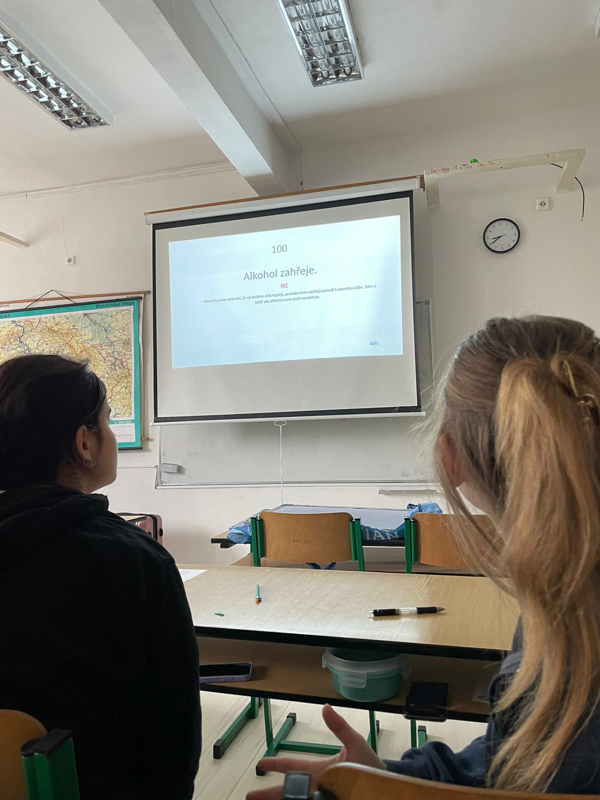 Workshop v 1.A byl zaměřen na problematiku alkoholu a jeho negativního dopadu na zdraví. 1. B se věnovala HIV a sexuálnímu zdraví a třídě 2. A byly poskytnuty informace o tom, jak chránit své duševní zdraví a jak zlepšit svou odolnost vůči stresu.
