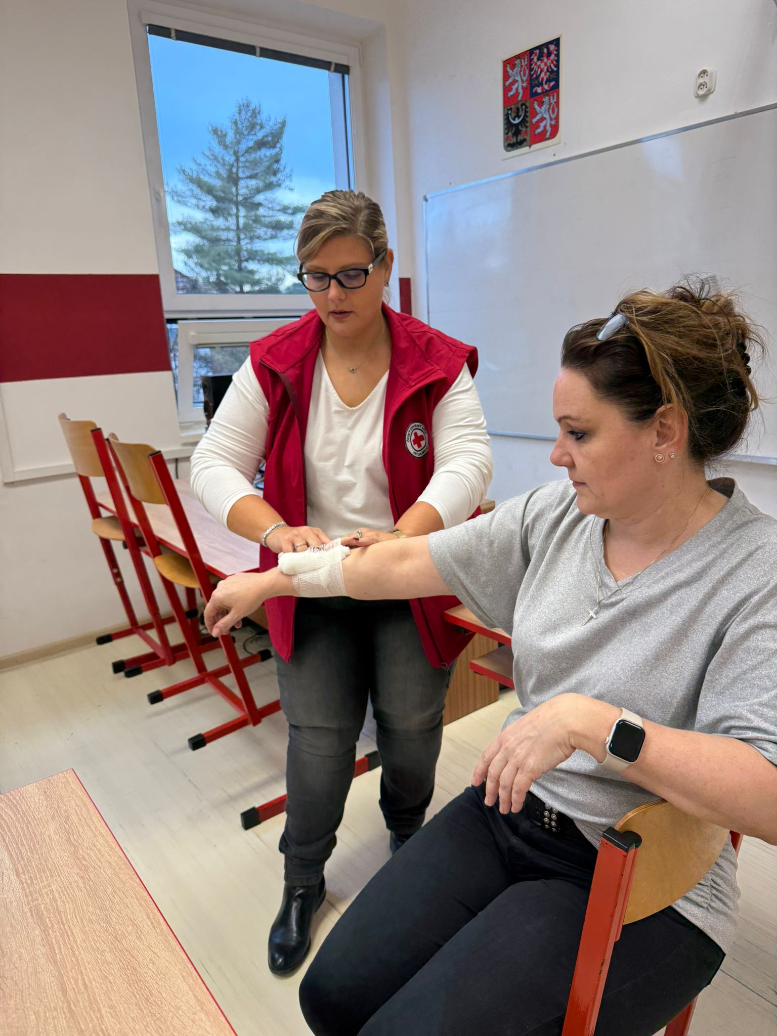 Zaměstnanci PrimMatu si osvěžili znalosti o poskytnutí první pomoci. Školení bylo organizováno ve spolupráci s Českým červeným křížem a účastníci si kromě teoretických základů mohli vyzkoušet také praktické dovednosti. Rovněž se seznámili s použitím defibrilátoru, inzulínového pera a dalších zdravotnických pomůcek.